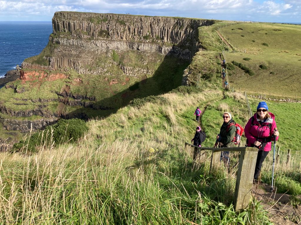 The path is of gravel with stone steps on the steep inclines, well maintained by the National Trust. The path continues around Benbane Head, Bengore Head and Contham Head down to Dunsverick. Some members took the bus (departs hourly) back to Portballintrae. The rest returned via the path arriving at the cars at 4.15. A 4.5hr walk.