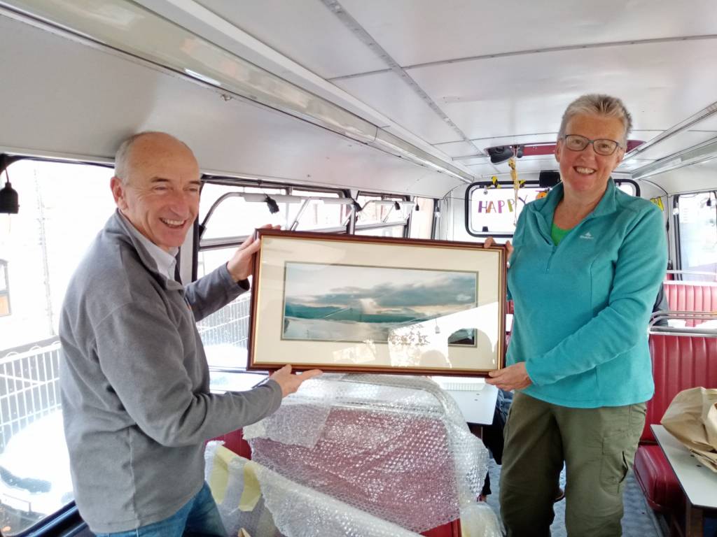 There was a sad farewell to stalwart members Helen and Geoff who are retiring to Wales, who have been with the club for more than twenty years. We had a lovely lunch in the double decker bus Pyke ‘N’ Pommes situated on the quay in Derry. Helen and Geoff were presented with a stunning framed photo of Five Finger Strand, Inishowen. Photographer, our own Tony K. We then adjourned to The Cottage café for coffee and cake.