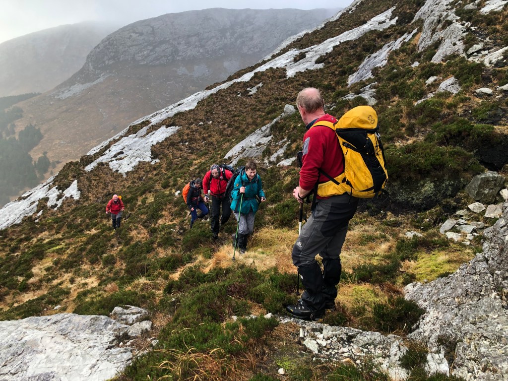 Walk in the Aghlas was led by James Finnegan who disappeared after Crocknalaragagh. All fifteen walkers made it back safely on a windy day and in daylight. James is the only person who did Aghla More on the day but there was no prize given for that. Some say he is lucky to be alive.