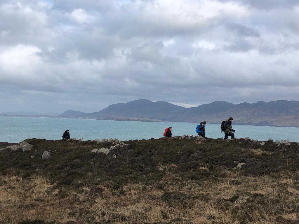 Eleven club members attended, although, in typical North West fashion, not all did the same walk. Two members did a low level walk exploring the beach and the small islands which were accessible at low tide. Three others stayed with the main group until reaching the summit of Meenachurrin (511m) and then headed south-east to reach the main road. This group returned by road, to the car park at Maghera, having completed a three and a half hour walk. The remainder of the group continued on to climb Slieve Tooey (472m) and then dropped steeply down the east side of the mountain to reach Lough Croaghballaghdown in time for the afternoon tea break. From there it was a short climb up again to reach Lough Acruppan. The group descended to Maghera by the easiest and shortest route, which involved following the water pipe down from the lake. We arrived back at the car park at 5:30p.m. making it a six hour walk in total. The views, throughout the day, were spectacular. Arranmore and Owey Island were clearly visible in the distance, with Loughros Point, Ballinreavy Strand and Maghera Strand nearer to hand. We finished the day with a coffee at the service station, outside Ardara, where we had car pooled earlier.