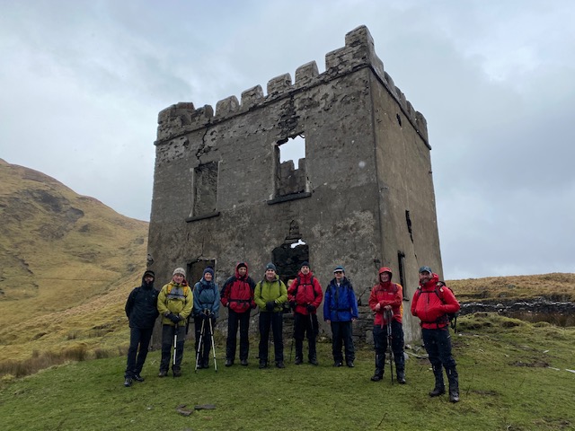 Unfortunately, there was thick mist and heavy rain with no appearance of clearing. Though some members wanted to brave the elements it was decided to abandon the walk and drive the few kilometres to the head of Glenveagh glen and walk to the castle.
