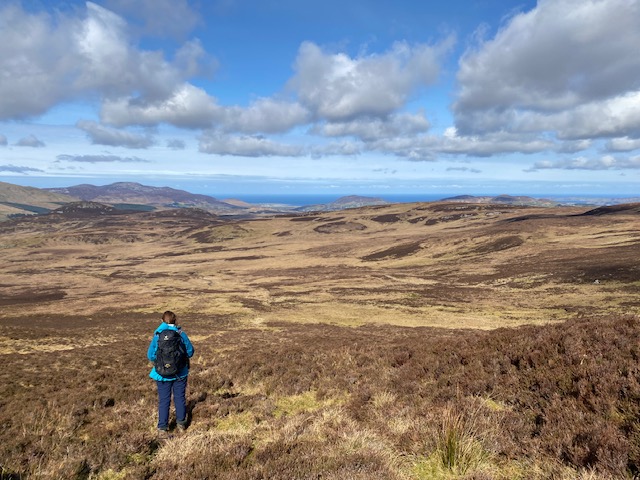 We returned via the Slievekeeragh ridge, back to the track and the carpark at Butler’s Bridge. A 4-hour walk. Noted was the very dry condition of the peat, after being so wet in February. Very little wildlife seen apart from a few ravens and many pairs of meadow pipits.