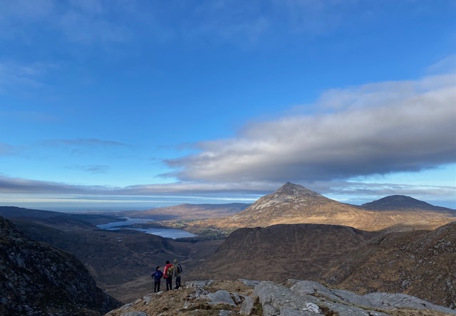 Lunch was had in a gully near spot height 480m at the top of the Poisoned Glen, which had great views of the majestic Errigal mountain and the Seven Sisters.