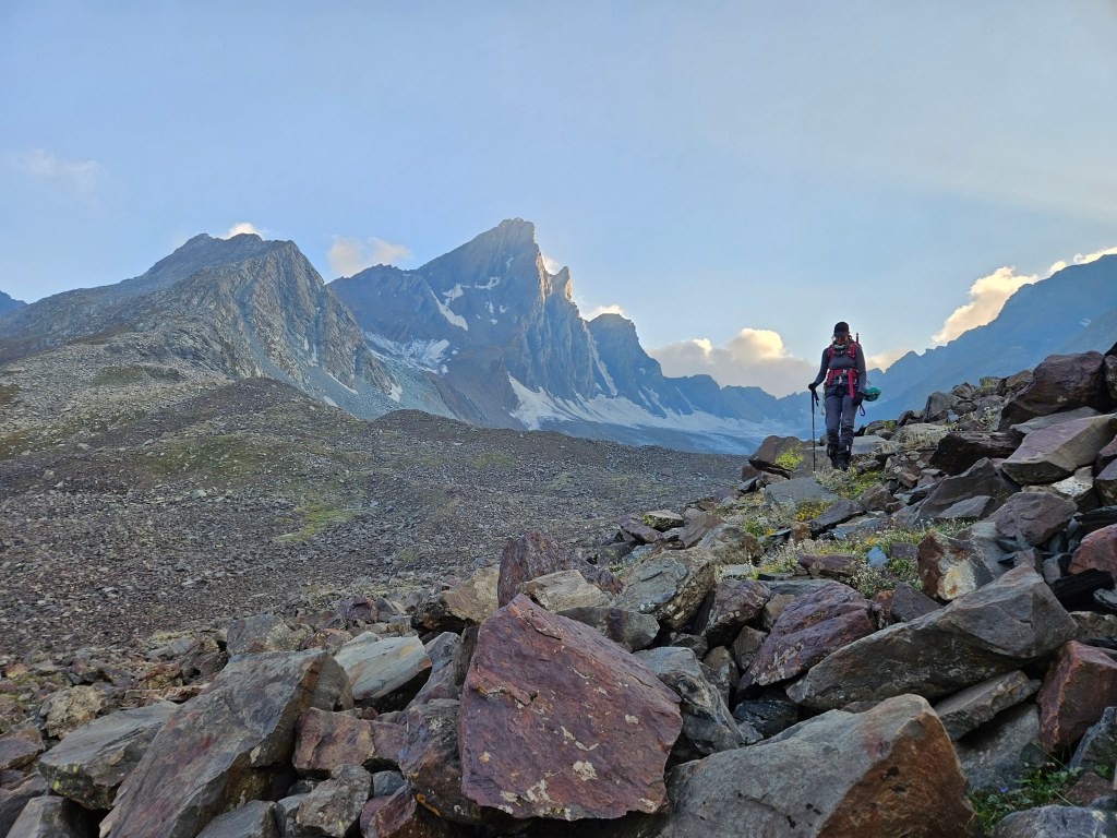 The mountains of Kashmir are unlike the other parts of the Himalaya that I have visited, being not as high, and heavily grazed, with spacious and extensive open pastures. Undoubtedly very beautiful with lots of alpine flowers, particularly Edelweiss. Some of the summits are very loose, and some not so. The trek seemed to me to be an unnatural line, skirting the mountains over ridges, then following a valley up into a picturesque camp, then back out again. (This is probably due to the fact that we had horses for transport, and they were limited where they could safely go). A couple of camps, from where we could access summits, would probably have been a better option, in retrospect. Still, we got 5 summits between us, more than we expected.